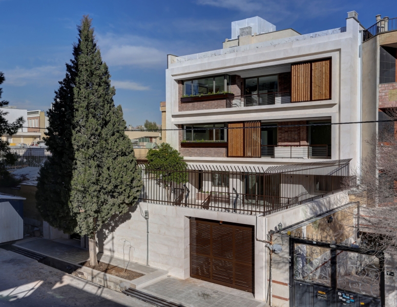 With the increase in residential space, considering large terrace in front of building was possible. And also, with the construction of a four-level building on the other side of the alley, two tertiary panels with wooden sprockets were used to preserve the privacy of the terraces by moving these panels and rotating the angles of interior space without spaces, different light and shadow plays occur on the terrace.