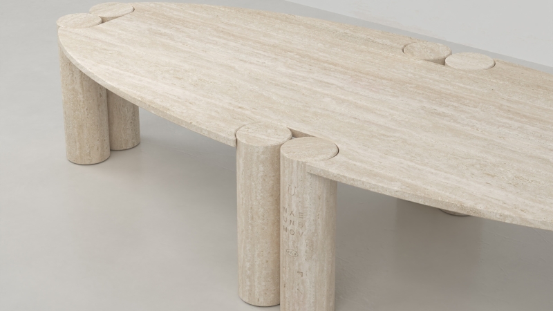 White travertine is a very deliberate choice. It’s a material loaded with history, especially in a Roman context, yet you have “emptied” it. Why this decision, and how does it connect to the concept of the collection?